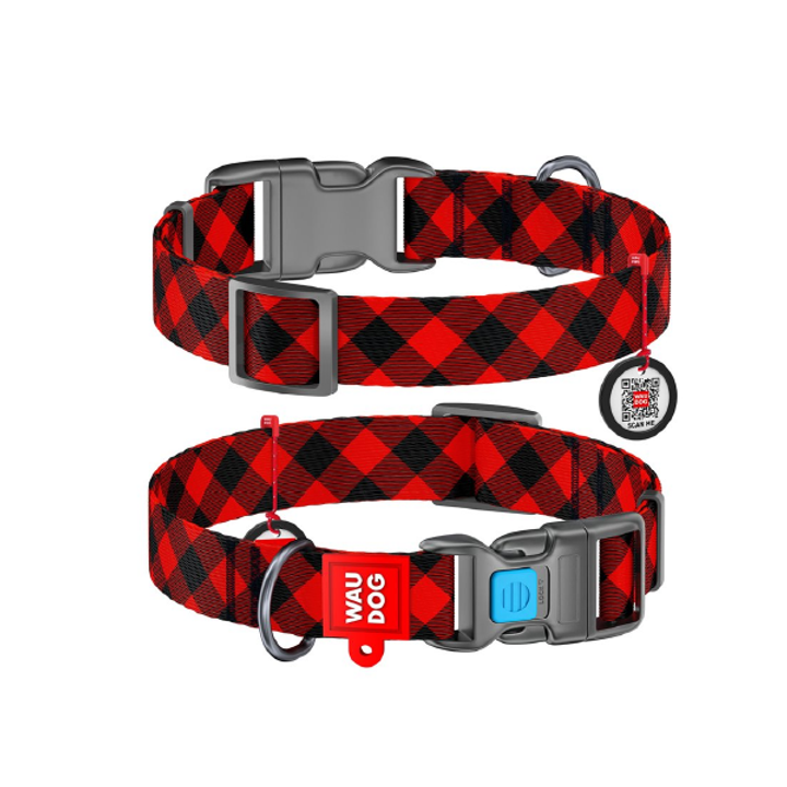 Waudog Nylon Collar Red Plaid with Metal Fastex-Buckle Talla S
